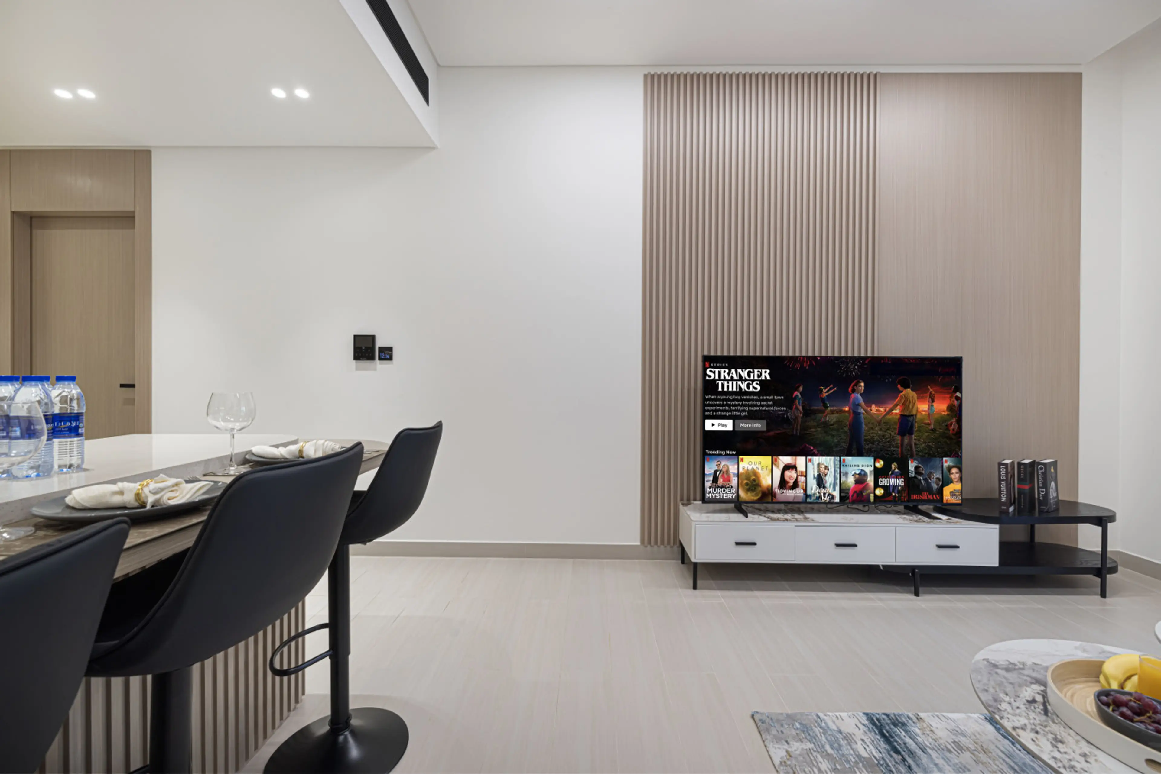 Step into a bright and modern 2-bedroom apartment with a separate maid’s room, located in the brand-new Dusk by Binghatti in JVC. Designed for comfort and longer stays, the apartment features a spacious living area, fully equipped kitchen, and premium bedding. Perfect for couples, small families, b...